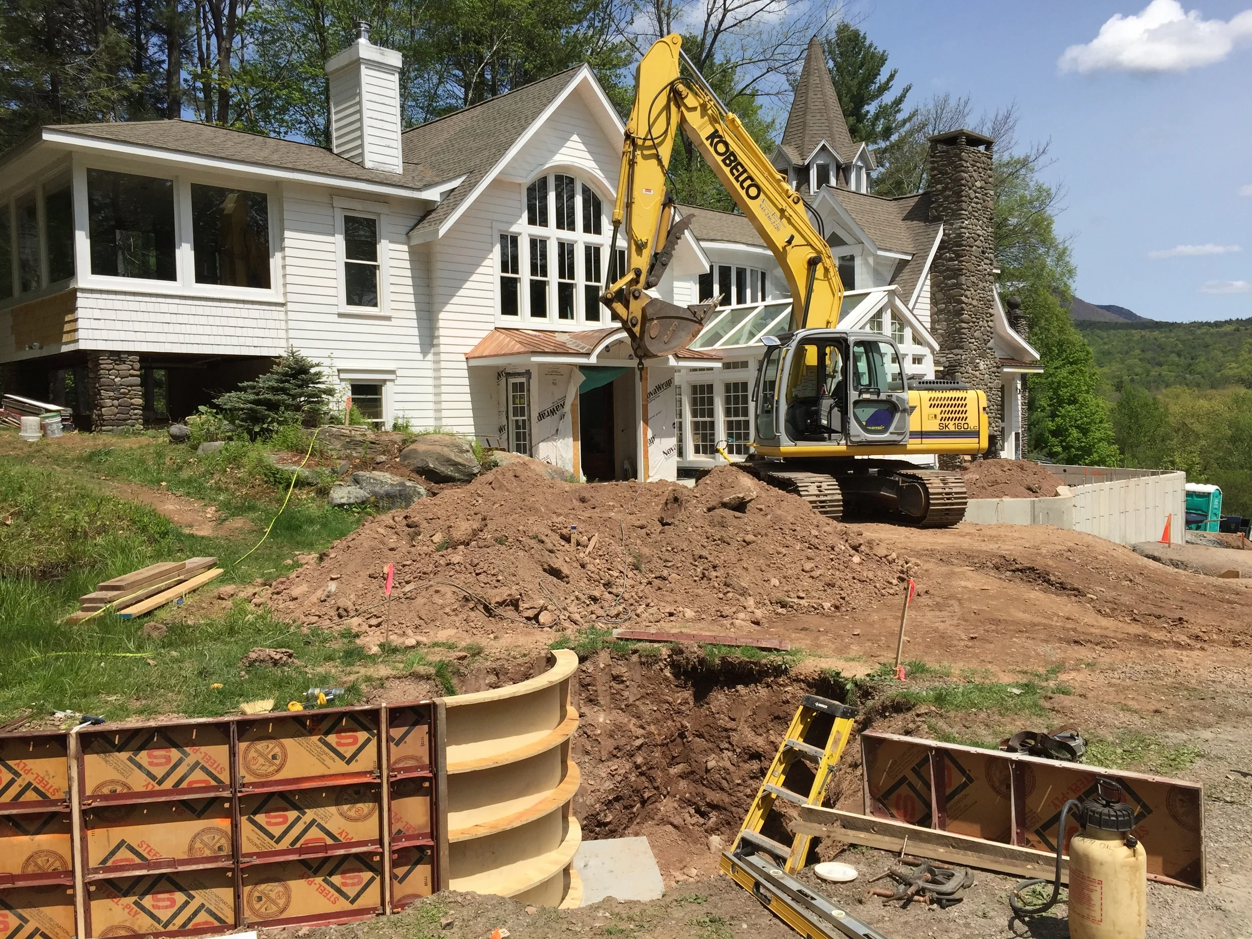 My renovation project in Woodstock, NY for a repeat client is winding down. The interior is almost complete as is the building facade. What remains is the balance of the site work, which will be brought to a point of conclusion before the first frost but may take many seasons to complete.